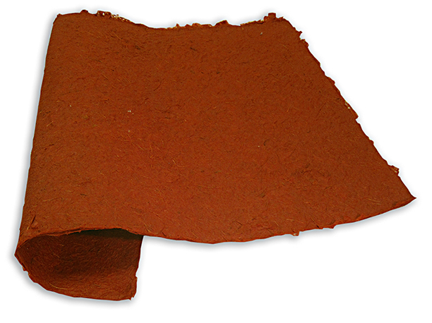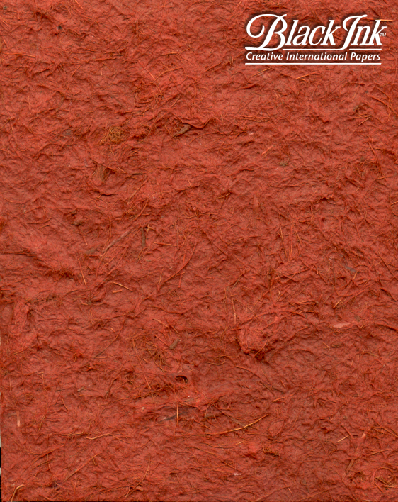 This thick yet flexible handmade paper Thai paper features a unique mat-like texture created with a blend of coconut hair, tree debris and Kozo. Because of its unusual texture and rich color, it is great for decorative arts and collage. It is also a popular paper with architecture and landscape design students, used to create various landscape effects in their models. Deckle edges on all four sides add to this papers handmade quality.