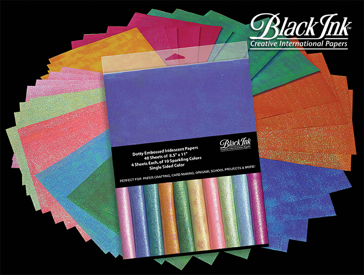 This new 40 sheet 8.5″ x 11″ paper pack features a subtle embossed “dotty” stippled-like pattern in ten popular iridescent colors that change hues as light reflects upon their glossy finish. Great for adding sparkle to a project without the mess of glitter. Perfect for card making, art projects, paper crafting, book covers and more. These pH neutral papers also crease beautifully, making them a favorite for origami use.