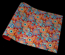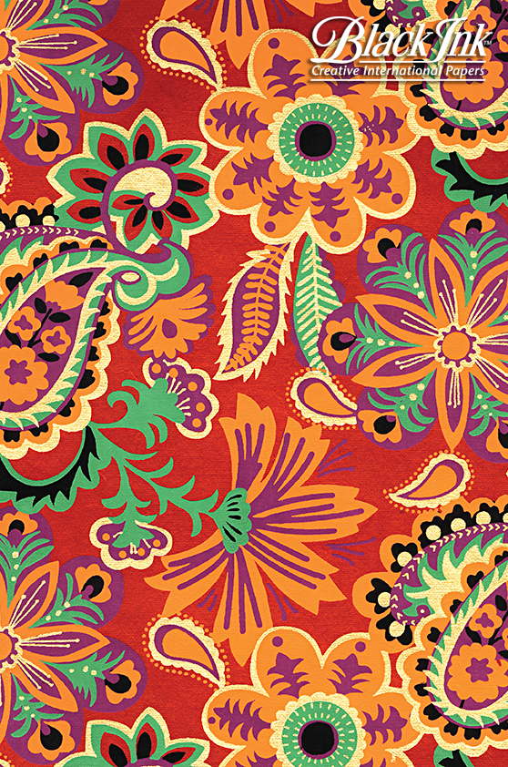 Brightly colored florals, combined with accents of gold, greenery and paisley create a cheery mood in this delightful hand silk-screened print from India. Eco-friendly and perfect for a multitude of uses including custom gift wrapping, handmade cards, mixed media and paper arts, home decor projects and more!