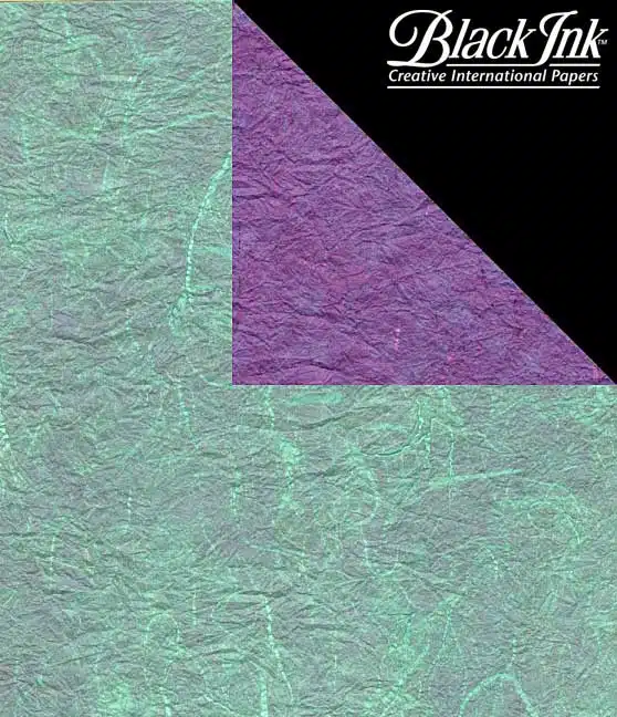 Two sheets of unryu paper laminated together in a purple and teal combination